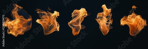 Fire collection set of flame burning isolated on dark background for graphic design purpose
