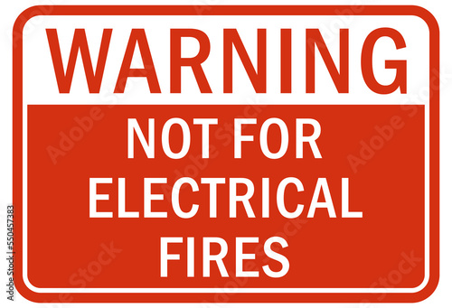 Fire extinguisher instruction sign and labels not for electrical fire warning