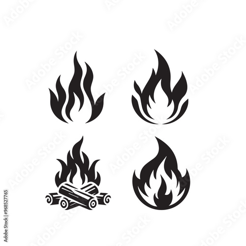 Fire flame silhouette. Fire flame vector design isolated on white background. Fire flame icon, logo.