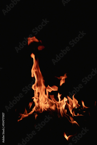 Fire flames on black background. Fire flame texture. Fire flame with copy space. Flames textured background. Flames on black background.