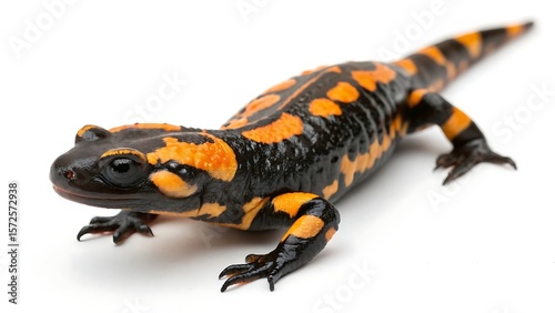 Fire salamander in animal isolated on a white background. AI GENERATED.
