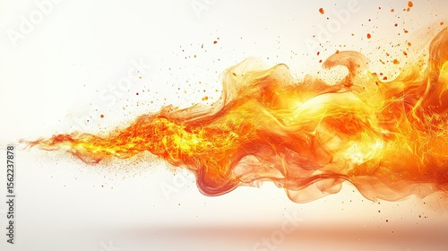 Fireball with Dynamic Motion and Bright Energy Effect on White Background for Fantasy, Gaming, and Magic-Themed Graphic Design