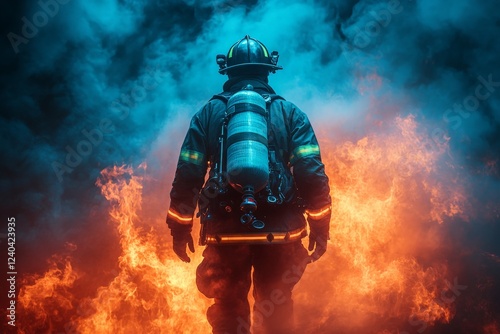 Firefighter responds to blaze with determination amidst smoke and flames in dramatic rescue operation