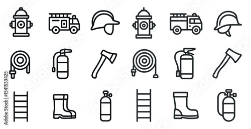 Firefighting outline icons set – rescue, emergency, fire safety symbols