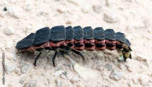 Firefly beetle larva, unusual insect, Lampyridae, close up, macro, entomology