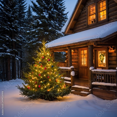 Fireside Festivities: Fraser Fir in a Cozy Cabin with Holiday Cheer