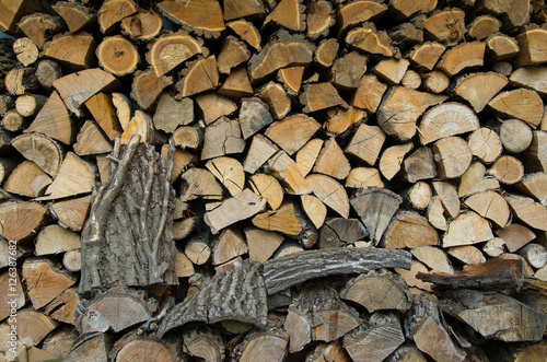 Firewood. Split and stacked firewood for the winter.