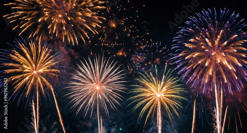 Fireworks bursting with glowing lights abstract background
