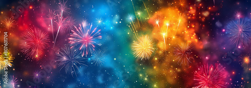 Fireworks light up the night sky with a breathtaking spectacle of bright colors and sparkling lights.