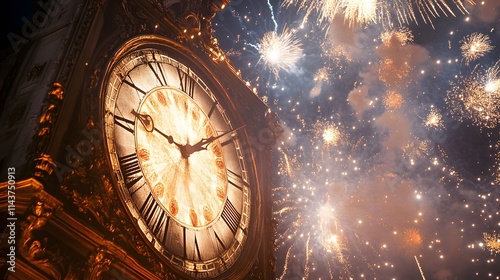 Fireworks lighting up the sky as the clock strikes twelve marking the moment of transformation