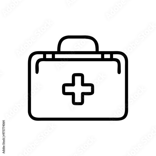 First aid kit icon, simple black line art, isolated on white, medical emergency concept