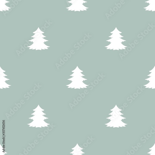 fir-trees on powder blue background. Forest blizzard. seamless winter pattern with spruce.