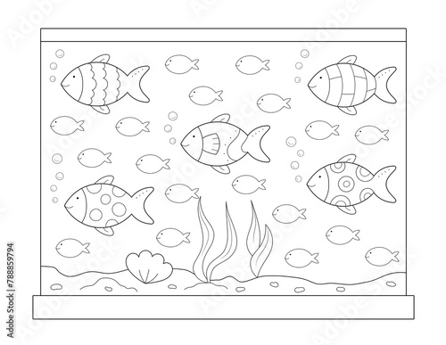 fish aquarium coloring page for kids. you can print it on standard 8.5x11 inch paper