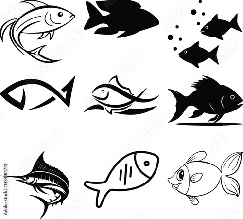 Fish Bundel simple icon. Vector ICON all icon Viktor