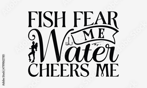Fish Fear Me Water Cheers Me - Fishing T- Shirt Design, Hand Drawn Lettering Phrase Isolated White Background, This Illustration Can Be Used Print On Bags, Stationary As A Poster.