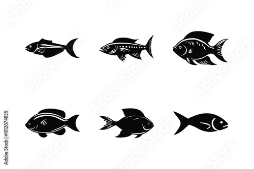 Fish icon silhouette vector set isolated on white background. food illustration sign collection design