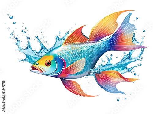 Fish leaping with vivid splash effect, clipart, isolated on transparent background