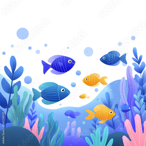 Fish swimming underwater cartoon colorful marine life flat design isolated on transparent background