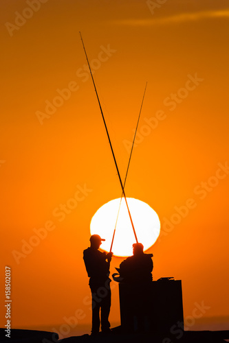 Fishermen Beach Sunrise Silhouetted