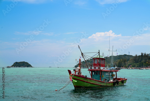 Fishing boat in sea with bluesky