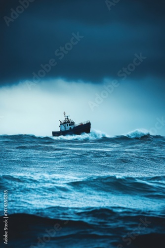 Fishing Boat Navigating Rough Seas Under Dramatic Sky Maritime Adventure Seascape Photography