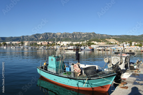 fishing boats in the fishing port of La Rapita, Tarragona province, Spain
