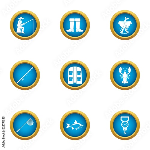 Fishing trade icons set. Flat set of 9 fishing trade vector icons for web isolated on white background