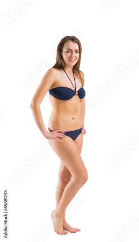 Fit girl in bikini smiling at camera