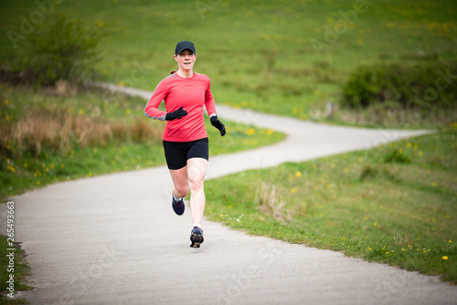 Fit senior woman in 50s exercising and keeping fit by running in a park