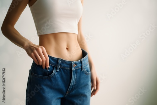 Fit Woman with Jeans and Crop Top Showing Flat Stomach, Healthy Lifestyle Concept