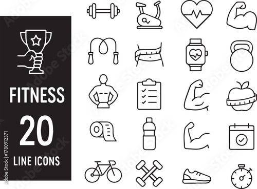 fitness 20 line icon set vector