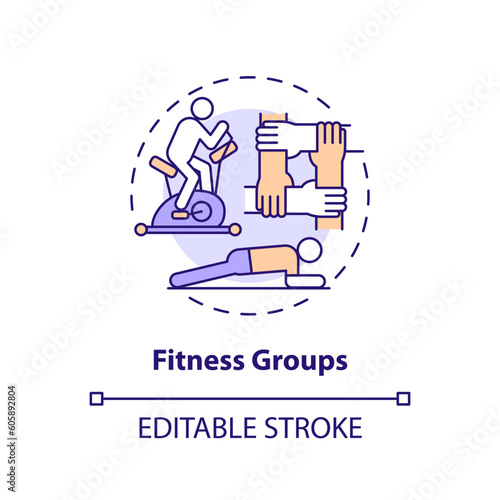 Fitness groups concept icon. Sport activity. Physical exercise. Training together. Small group. Community support abstract idea thin line illustration. Isolated outline drawing. Editable stroke