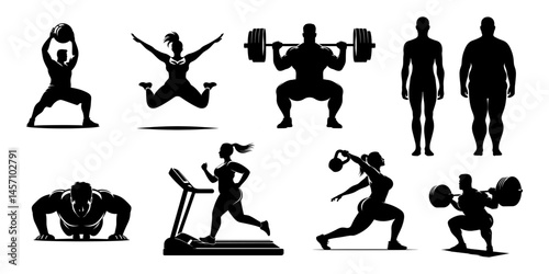 Fitness Silhouettes of Men and Women in Workout Poses