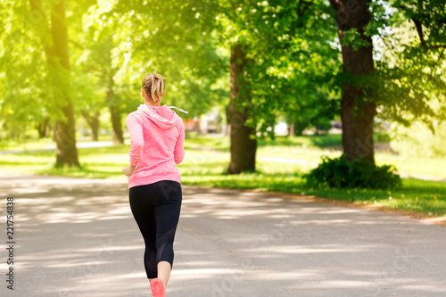Fitness woman training and jogging in summer park
