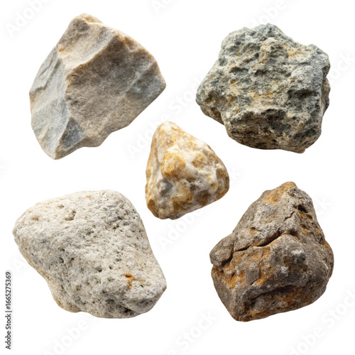 Five Assorted Rocks on Transparent Background Geological Collection with Natural Textures