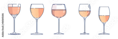 Five Different Wine Glasses with Rose Wine