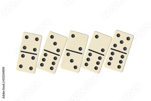 Five dominoes tiles isolated on white background. Top view. 3d render