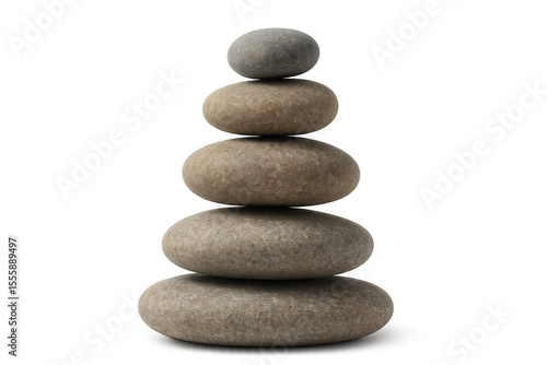Five pebbles balancing on each other on a transparent background, creating a serene and meditative atmosphere