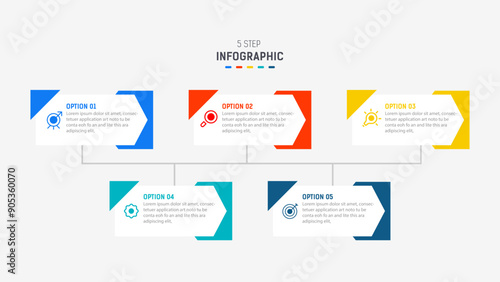Five Step Infographic design element template for presentation. info graphic illustration. process diagram and presentations step, banner, flow chart, 5 option template.