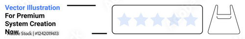 Five-star rating bar next to a simple shopping bag outline. Ideal for customer reviews, e-commerce, quality ratings, user feedback, online shopping, service evaluations, flat landing page banner