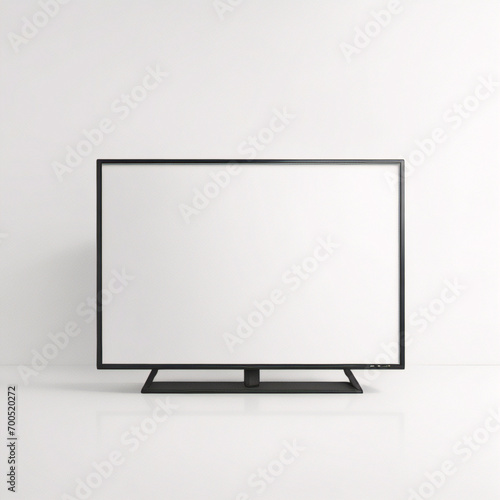 Flache Designillustration eines Monitors für Computer oder Fernseher. Schwarzer Rahmen mit leerem weißen Bildschirm zum Hinzufügen von Text oder Bild. Isoliert auf weißem Hintergrund, Vektor