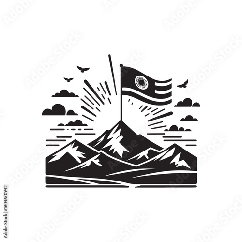 Flag Day Silhouette Vector Illustration, Solid White Background.
