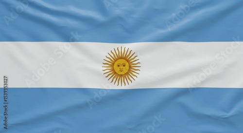 Flag of Argentina with light blue and white horizontal stripes, golden sun emblem centered, depicting national pride.