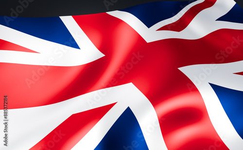 Flag of United Kingdom, shiny cloth. Banner, symbol and British culture. Country, nation, election, government, politics and society. 3D illustration