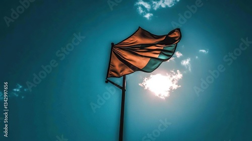 Flag waving, sunny sky, outdoors, patriotism, graphic design