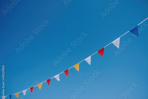 flags flutter gently in breeze against clear blue sky
