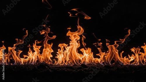 flame fire dancing on a black background with vibrant orange hues and dynamic shapes creating a visual texture and energy