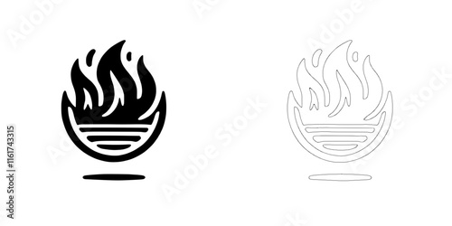 Flame Logo Design: Abstract flame logo design with two variations, one black and one white, perfect for a company that embodies passion, energy, and innovation. Both versions feature a minimalist.