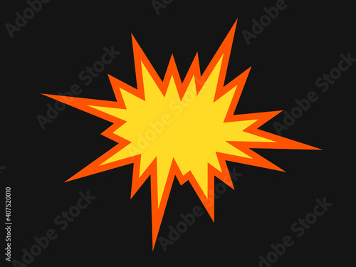 Flames after detonation, blow-up and explosion of the bomb. Vector illustration isolated on black.