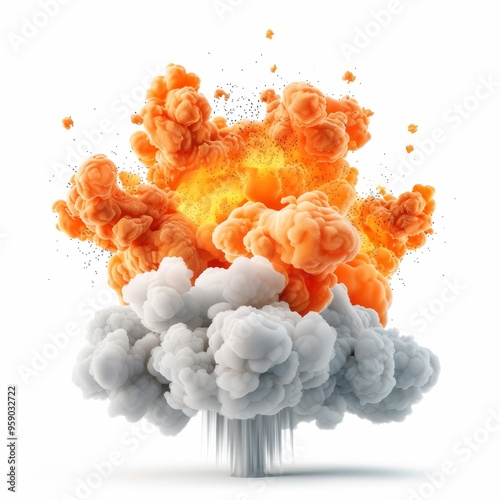 Flames and shockwave everywhere, massive explosion, disaster element, hand-drawn illustration, fiery blast and shockwave, isolated on white background